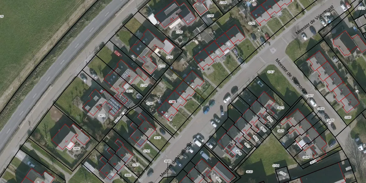 Het perceel waarop Meester de Vriesstraat 24 staat heeft een oppervlakte van 653 m². Dit is een groot perceel. De perceeloppervlakte wordt geregistreerd door het Kadaster. Gedetailleerde informatie over de maten van dit perceel kunt u vinden in het rapport Kadastrale kaart met maatvoering van Meester de Vriesstraat 24.