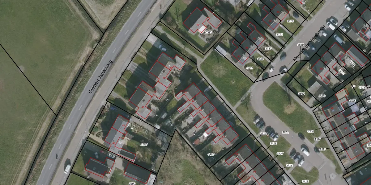 Het perceel waarop Meester de Vriesstraat 42 staat heeft een oppervlakte van 2612 m². Dit is een zeer groot perceel. De perceeloppervlakte wordt geregistreerd door het Kadaster. Gedetailleerde informatie over de maten van dit perceel kunt u vinden in het rapport Kadastrale kaart met maatvoering van Meester de Vriesstraat 42.