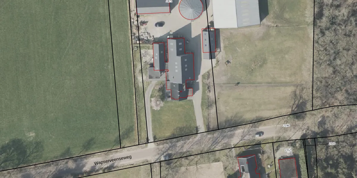 Het perceel waarop Wapserveenseweg 34 staat heeft een oppervlakte van 4240 m². Dit is een zeer groot perceel. De perceeloppervlakte wordt geregistreerd door het Kadaster. Gedetailleerde informatie over de maten van dit perceel kunt u vinden in het rapport Kadastrale kaart met maatvoering van Wapserveenseweg 34.