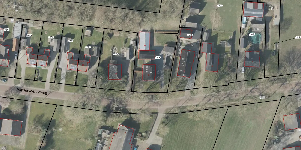 Het perceel waarop Wapserveenseweg 8 staat heeft een oppervlakte van 1010 m². Dit is een zeer groot perceel. De perceeloppervlakte wordt geregistreerd door het Kadaster. Gedetailleerde informatie over de maten van dit perceel kunt u vinden in het rapport Kadastrale kaart met maatvoering van Wapserveenseweg 8.