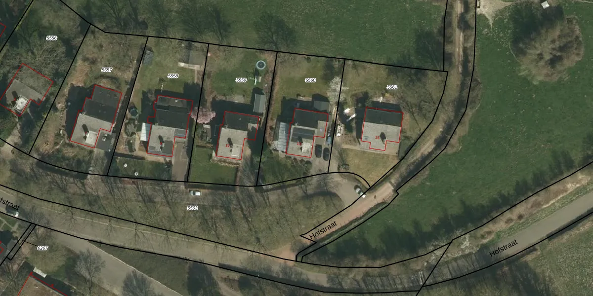 Hofstraat 13 is gelegen op kadastraal perceel WTM00B5560. Deze kadastrale aanduiding is uniek en wordt gebruikt door het Kadaster om eigendomsrechten en andere zakelijke rechten vast te leggen. Het perceel maakt onderdeel uit van de kadastrale gemeente Wittem.