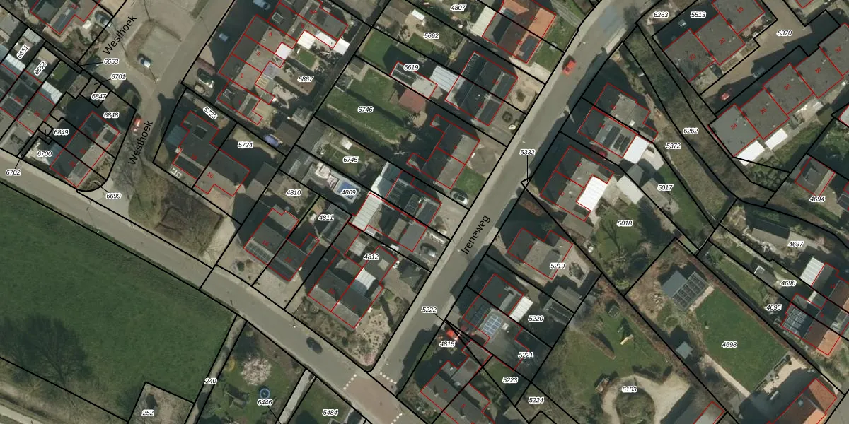 Ireneweg 5 is gelegen op kadastraal perceel WTM00B6745. Deze kadastrale aanduiding is uniek en wordt gebruikt door het Kadaster om eigendomsrechten en andere zakelijke rechten vast te leggen. Het perceel maakt onderdeel uit van de kadastrale gemeente Wittem.