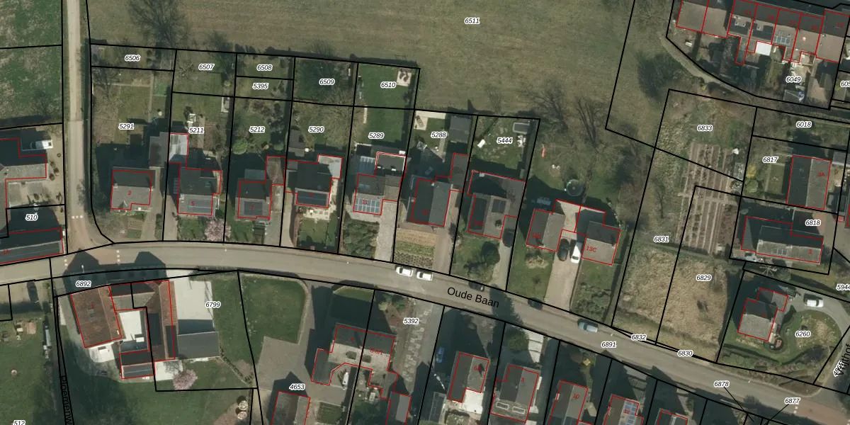 Het perceel waarop Oude Baan 13 staat heeft een oppervlakte van 542 m². Dit is een groot perceel. De perceeloppervlakte wordt geregistreerd door het Kadaster. Gedetailleerde informatie over de maten van dit perceel kunt u vinden in het rapport Kadastrale kaart met maatvoering van Oude Baan 13.