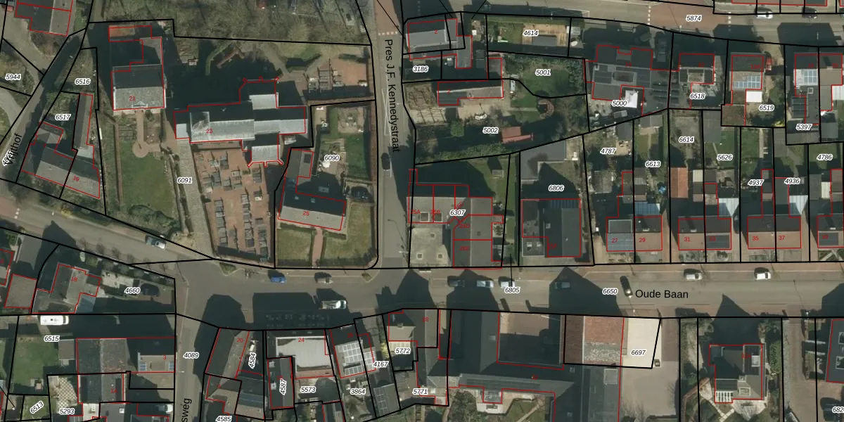 Het perceel waarop Oude Baan 25-A staat heeft een oppervlakte van 565 m². Dit is een groot perceel. De perceeloppervlakte wordt geregistreerd door het Kadaster. Gedetailleerde informatie over de maten van dit perceel kunt u vinden in het rapport Kadastrale kaart met maatvoering van Oude Baan 25-A.