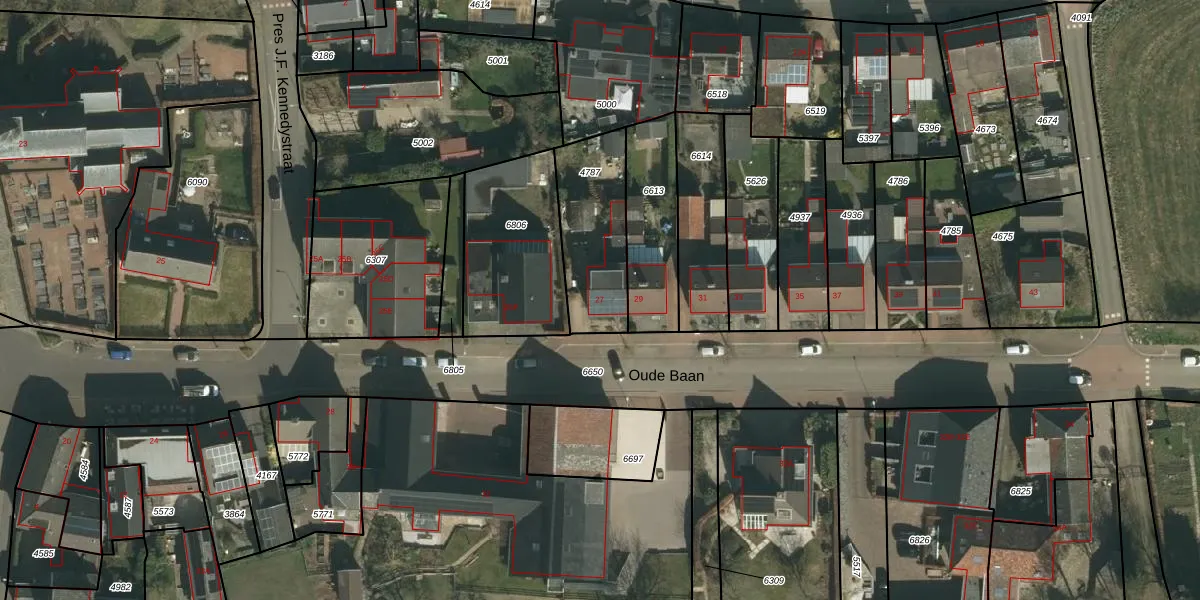 Het perceel waarop Oude Baan 27 staat heeft een oppervlakte van 360 m². Dit is een groot perceel. De perceeloppervlakte wordt geregistreerd door het Kadaster. Gedetailleerde informatie over de maten van dit perceel kunt u vinden in het rapport Kadastrale kaart met maatvoering van Oude Baan 27.