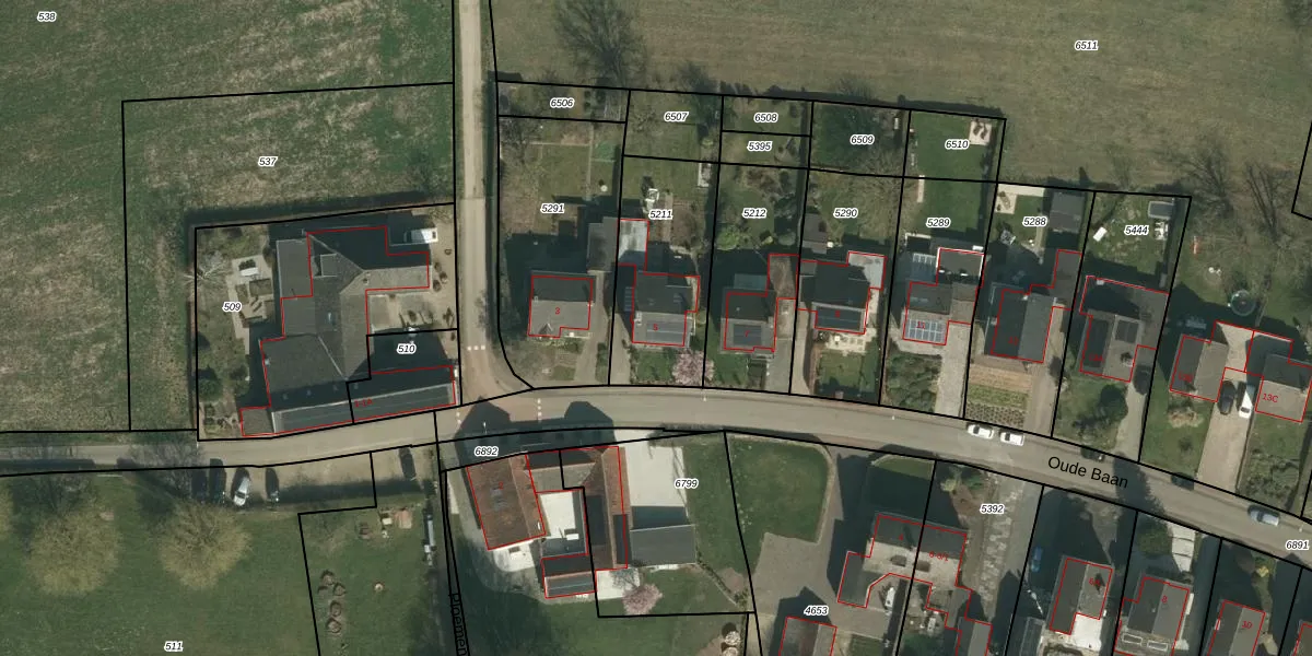 Het perceel waarop Oude Baan 5 staat heeft een oppervlakte van 510 m². Dit is een groot perceel. De perceeloppervlakte wordt geregistreerd door het Kadaster. Gedetailleerde informatie over de maten van dit perceel kunt u vinden in het rapport Kadastrale kaart met maatvoering van Oude Baan 5.