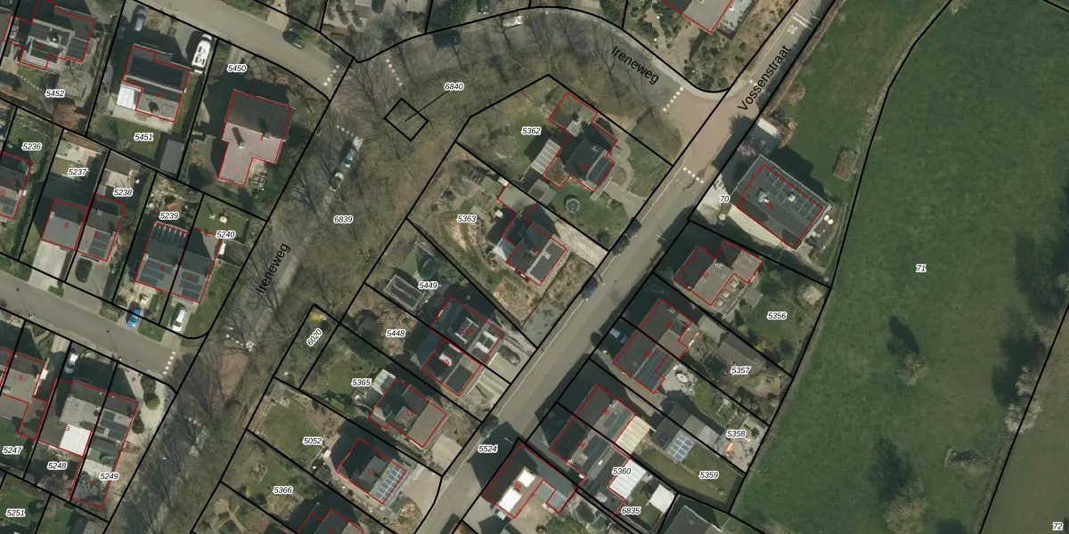 Het perceel waarop Vossenstraat 17 staat heeft een oppervlakte van 707 m². Dit is een groot perceel. De perceeloppervlakte wordt geregistreerd door het Kadaster. Gedetailleerde informatie over de maten van dit perceel kunt u vinden in het rapport Kadastrale kaart met maatvoering van Vossenstraat 17.