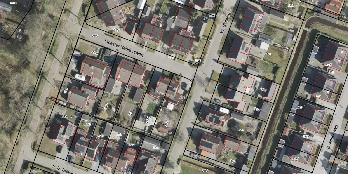 Het perceel waarop Meester Haddersweg 2 staat heeft een oppervlakte van 485 m². Dit is een groot perceel. De perceeloppervlakte wordt geregistreerd door het Kadaster. Gedetailleerde informatie over de maten van dit perceel kunt u vinden in het rapport Kadastrale kaart met maatvoering van Meester Haddersweg 2.