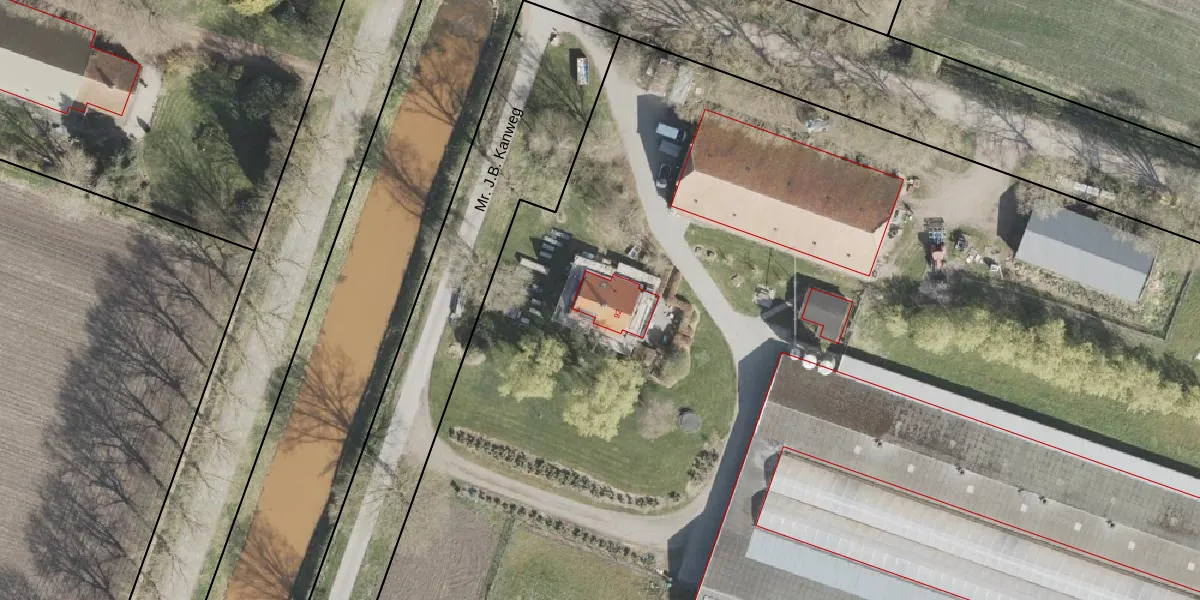 Het perceel waarop Mr. J.B. Kanweg 92 staat heeft een oppervlakte van 12,5 ha. Dit is een zeer groot perceel. De perceeloppervlakte wordt geregistreerd door het Kadaster. Gedetailleerde informatie over de maten van dit perceel kunt u vinden in het rapport Kadastrale kaart met maatvoering van Mr. J.B. Kanweg 92.