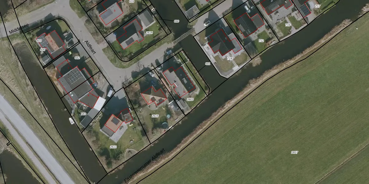 Het perceel waarop Aldfeart 12 staat heeft een oppervlakte van 470 m². Dit is een groot perceel. De perceeloppervlakte wordt geregistreerd door het Kadaster. Gedetailleerde informatie over de maten van dit perceel kunt u vinden in het rapport Kadastrale kaart met maatvoering van Aldfeart 12.