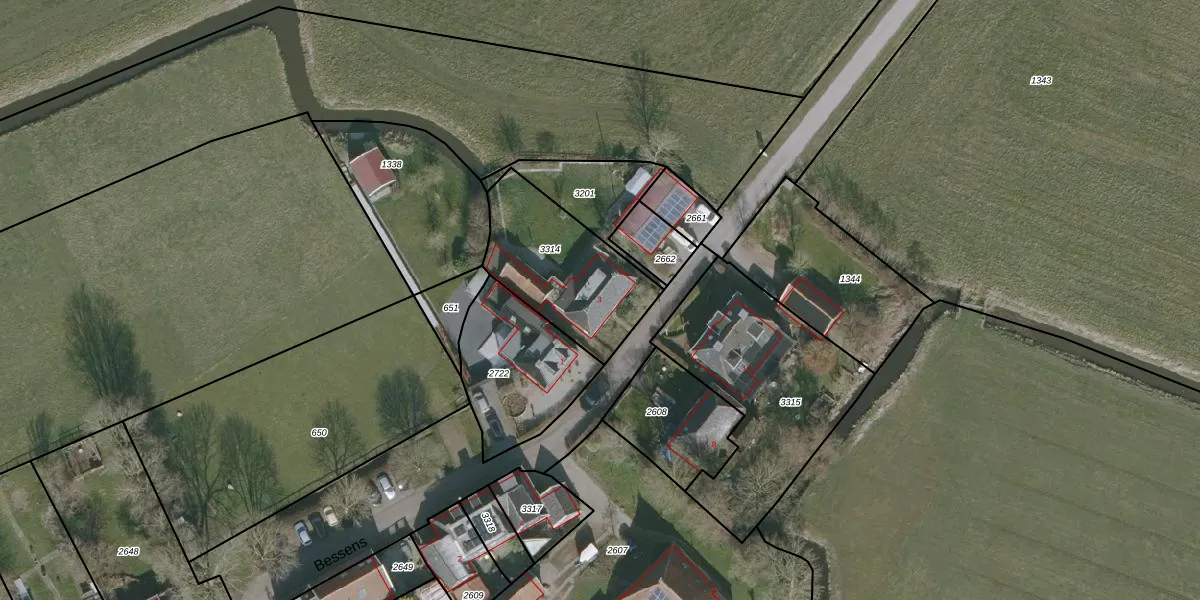 Het perceel waarop Bessens 3 staat heeft een oppervlakte van 467 m². Dit is een groot perceel. De perceeloppervlakte wordt geregistreerd door het Kadaster. Gedetailleerde informatie over de maten van dit perceel kunt u vinden in het rapport Kadastrale kaart met maatvoering van Bessens 3.