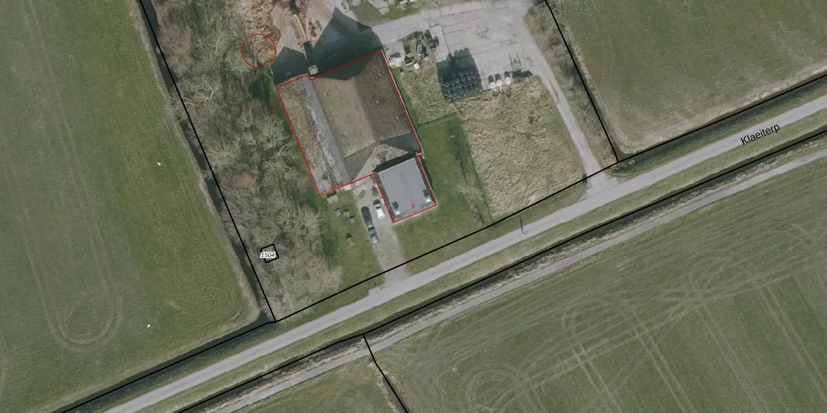 Het perceel waarop Klaeiterp 5 staat heeft een oppervlakte van 2,1 ha. Dit is een zeer groot perceel. De perceeloppervlakte wordt geregistreerd door het Kadaster. Gedetailleerde informatie over de maten van dit perceel kunt u vinden in het rapport Kadastrale kaart met maatvoering van Klaeiterp 5.