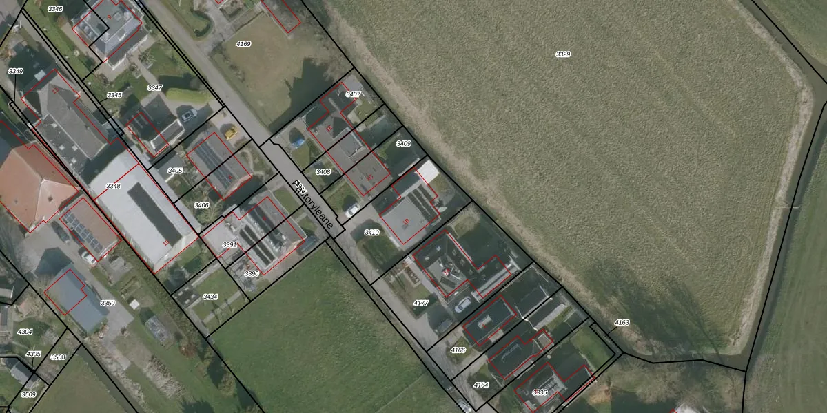 Pastoryleane 1-B is gelegen op kadastraal perceel BAA02A3410. Deze kadastrale aanduiding is uniek en wordt gebruikt door het Kadaster om eigendomsrechten en andere zakelijke rechten vast te leggen. Het perceel maakt onderdeel uit van de kadastrale gemeente Baard.