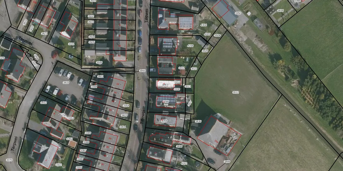 Gebruik de zoekbalk of klik op een perceel voor informatie over de adressen binnen dit perceel.