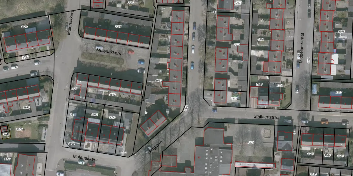 Berglaan 7 is gelegen op kadastraal perceel WDT00G3567. Deze kadastrale aanduiding is uniek en wordt gebruikt door het Kadaster om eigendomsrechten en andere zakelijke rechten vast te leggen. Het perceel maakt onderdeel uit van de kadastrale gemeente Woensdrecht.