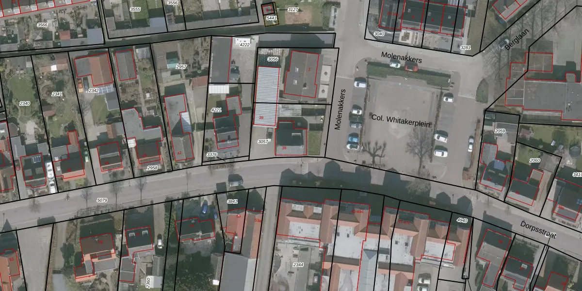 Dorpsstraat 36 is gelegen op kadastraal perceel WDT00G3057. Deze kadastrale aanduiding is uniek en wordt gebruikt door het Kadaster om eigendomsrechten en andere zakelijke rechten vast te leggen. Het perceel maakt onderdeel uit van de kadastrale gemeente Woensdrecht.