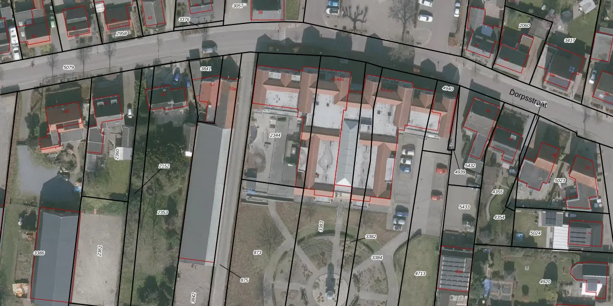 Het perceel waarop Dorpsstraat 49-b staat heeft een oppervlakte van 910 m². Dit is een groot perceel. De perceeloppervlakte wordt geregistreerd door het Kadaster. Gedetailleerde informatie over de maten van dit perceel kunt u vinden in het rapport Kadastrale kaart met maatvoering van Dorpsstraat 49-b.