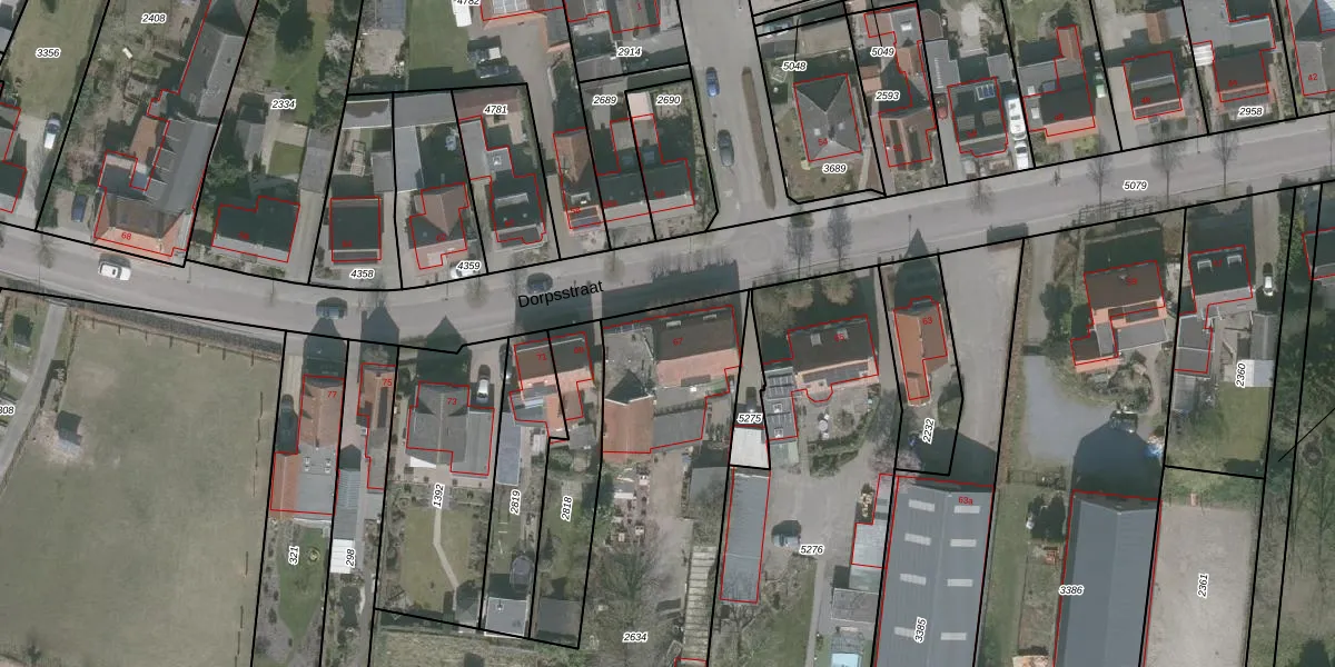 Het perceel waarop Dorpsstraat 67 staat heeft een oppervlakte van 2490 m². Dit is een zeer groot perceel. De perceeloppervlakte wordt geregistreerd door het Kadaster. Gedetailleerde informatie over de maten van dit perceel kunt u vinden in het rapport Kadastrale kaart met maatvoering van Dorpsstraat 67.