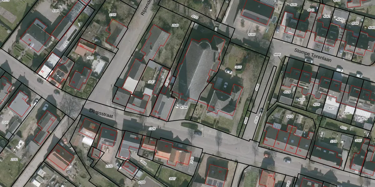 Het perceel waarop Dorpsstraat 82 staat heeft een oppervlakte van 893 m². Dit is een groot perceel. De perceeloppervlakte wordt geregistreerd door het Kadaster. Gedetailleerde informatie over de maten van dit perceel kunt u vinden in het rapport Kadastrale kaart met maatvoering van Dorpsstraat 82.
