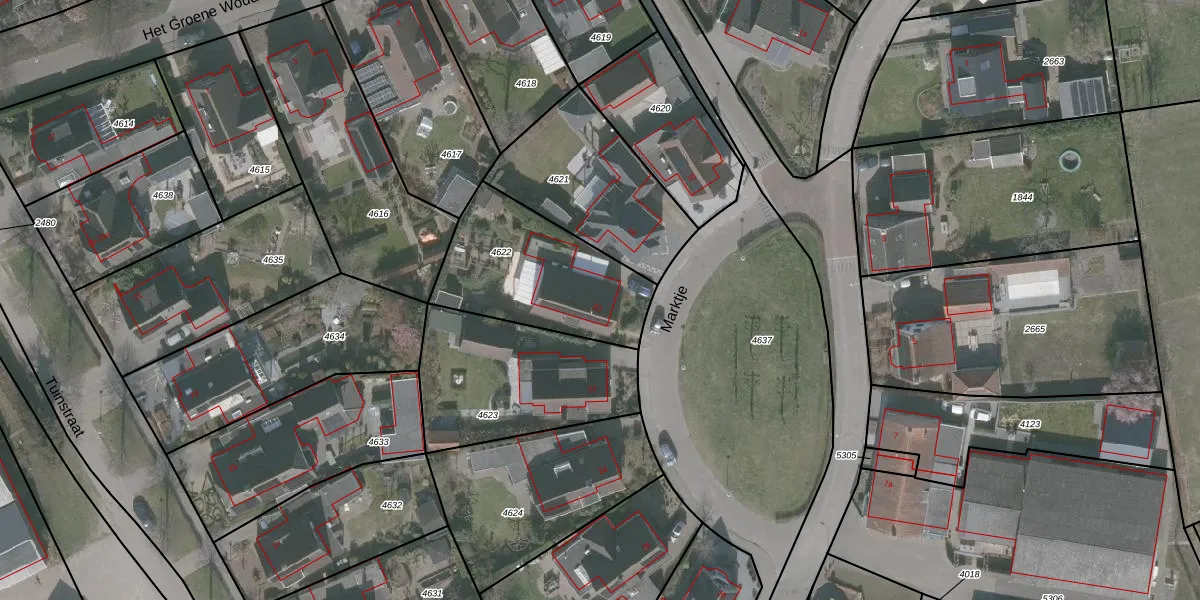 Het perceel waarop Marktje 20 staat heeft een oppervlakte van 587 m². Dit is een groot perceel. De perceeloppervlakte wordt geregistreerd door het Kadaster. Gedetailleerde informatie over de maten van dit perceel kunt u vinden in het rapport Kadastrale kaart met maatvoering van Marktje 20.