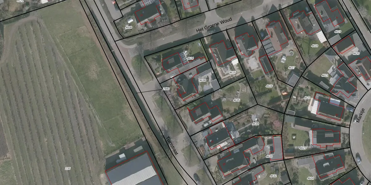Het perceel waarop Tuinstraat 19 staat heeft een oppervlakte van 466 m². Dit is een groot perceel. De perceeloppervlakte wordt geregistreerd door het Kadaster. Gedetailleerde informatie over de maten van dit perceel kunt u vinden in het rapport Kadastrale kaart met maatvoering van Tuinstraat 19.
