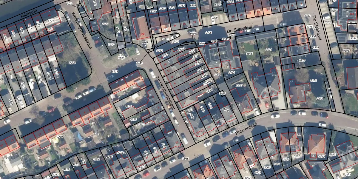 1e Honthorststraat 6 is gelegen op kadastraal perceel WDN01B5440. Deze kadastrale aanduiding is uniek en wordt gebruikt door het Kadaster om eigendomsrechten en andere zakelijke rechten vast te leggen. Het perceel maakt onderdeel uit van de kadastrale gemeente Woerden.
