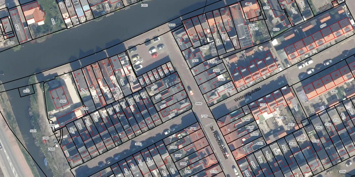 Gebruik de zoekbalk of klik op een perceel voor informatie over de adressen binnen dit perceel.