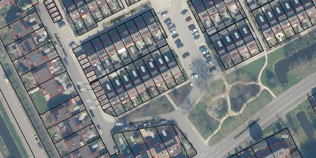 Aalberse-lanen 5 is gelegen op kadastraal perceel WDN01A3722. Deze kadastrale aanduiding is uniek en wordt gebruikt door het Kadaster om eigendomsrechten en andere zakelijke rechten vast te leggen. Het perceel maakt onderdeel uit van de kadastrale gemeente Woerden.