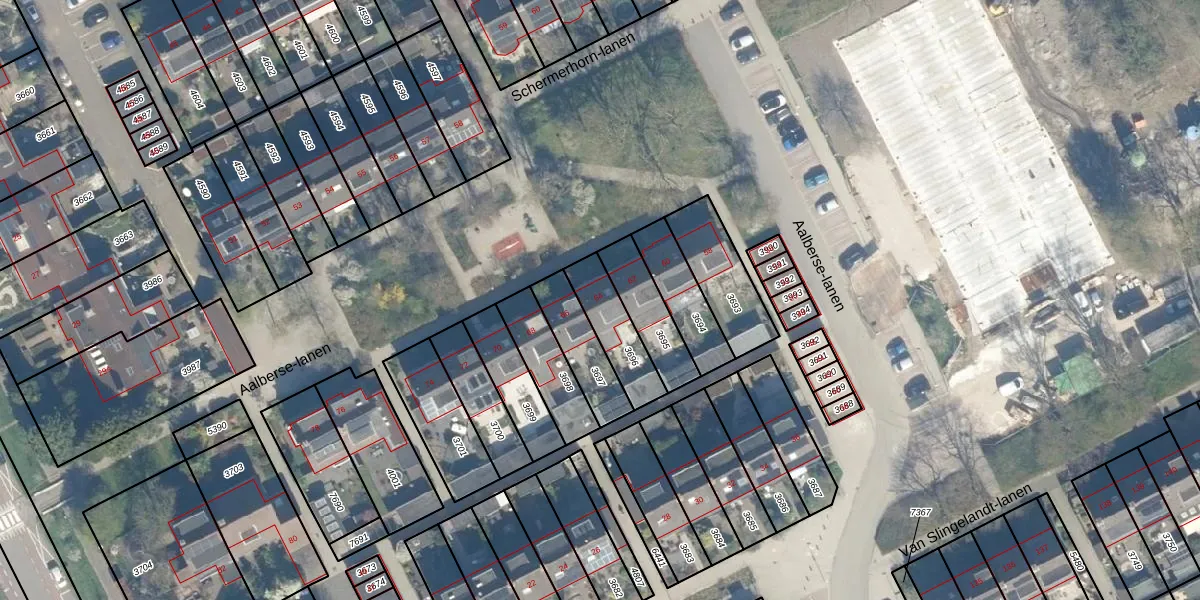 Gebruik de zoekbalk of klik op een perceel voor informatie over de adressen binnen dit perceel.