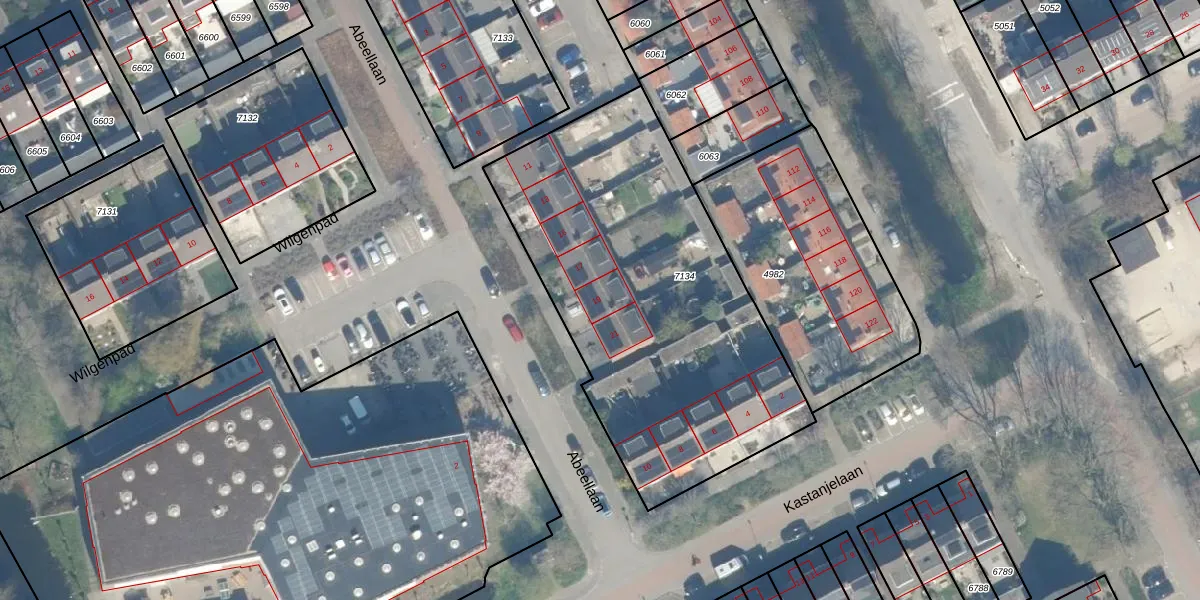 Abeellaan 19 is gelegen op kadastraal perceel WDN01B7134. Deze kadastrale aanduiding is uniek en wordt gebruikt door het Kadaster om eigendomsrechten en andere zakelijke rechten vast te leggen. Het perceel maakt onderdeel uit van de kadastrale gemeente Woerden.