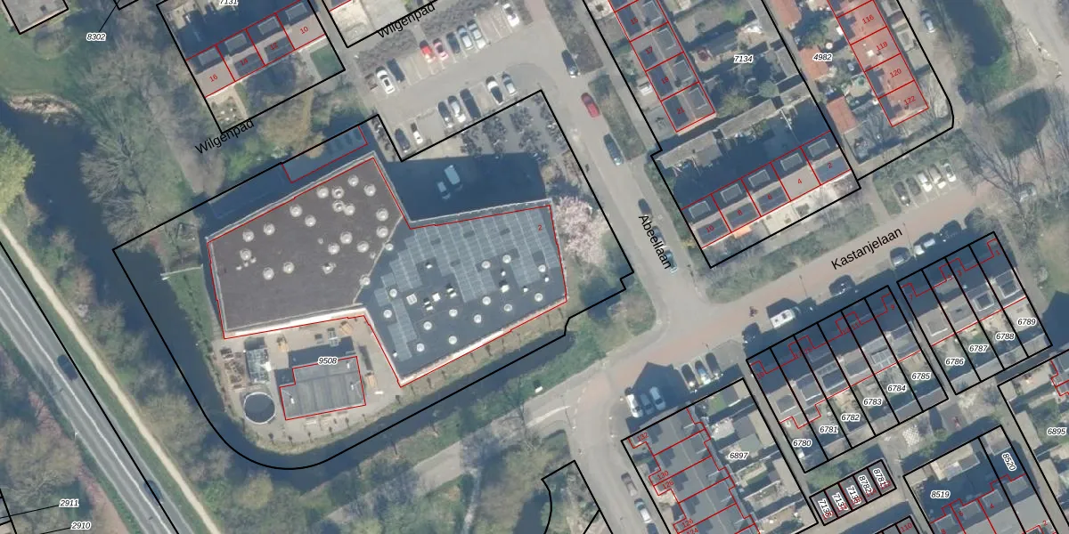 Abeellaan 2 is gelegen op kadastraal perceel WDN01B9508. Deze kadastrale aanduiding is uniek en wordt gebruikt door het Kadaster om eigendomsrechten en andere zakelijke rechten vast te leggen. Het perceel maakt onderdeel uit van de kadastrale gemeente Woerden.