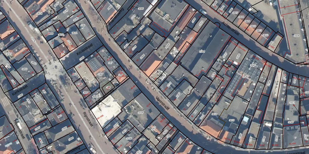 Het adres ligt op het perceel WDN01-C-2277, dat zich in de kadastrale gemeente Woerden bevindt. Het perceel is 288 m² groot. Dat is kleiner dan de gemiddelde perceeloppervlakte in Woerden, dat op 1325,81 m² ligt. Het grootste perceel in de kadastrale gemeente is 55,0 ha. Het kleinste perceel heeft een oppervlakte van 0 m². Op het perceel liggen in totaal 2 adressen. De laatste wijziging in het de Basisregistratie Kadaster (BRK) was op 14-12-1999.
