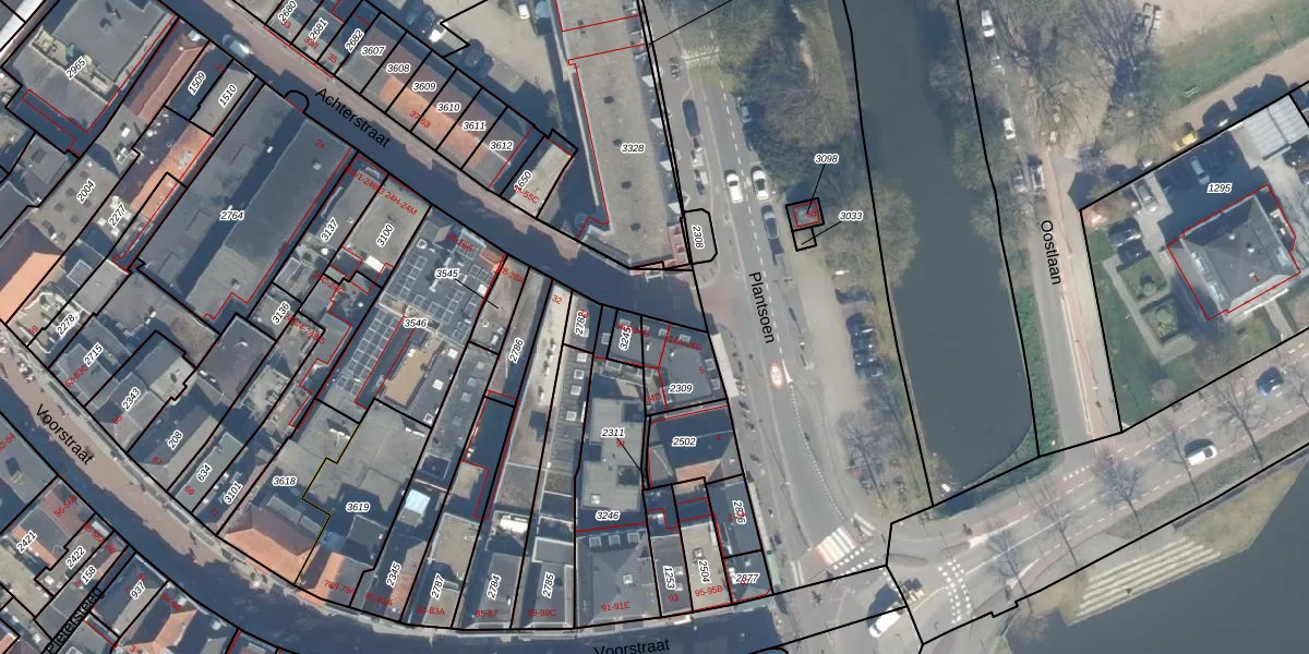 Het adres ligt op het perceel WDN01-C-2309, dat zich in de kadastrale gemeente Woerden bevindt. Het perceel is 130 m² groot. Dat is kleiner dan de gemiddelde perceeloppervlakte in Woerden, dat op 1325,81 m² ligt. Het grootste perceel in de kadastrale gemeente is 55,0 ha. Het kleinste perceel heeft een oppervlakte van 0 m². Op het perceel liggen in totaal 6 adressen. De huidige grenzen van het perceel zijn digitaal in de Basisregistratie Kadaster (BRK) geregistreerd op 04-03-2009.