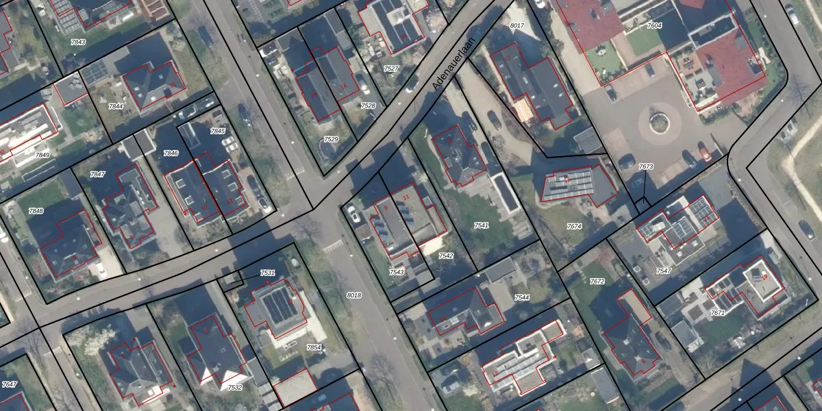 Adenauerlaan 11 is gelegen op kadastraal perceel WDN01A7542. Deze kadastrale aanduiding is uniek en wordt gebruikt door het Kadaster om eigendomsrechten en andere zakelijke rechten vast te leggen. Het perceel maakt onderdeel uit van de kadastrale gemeente Woerden.