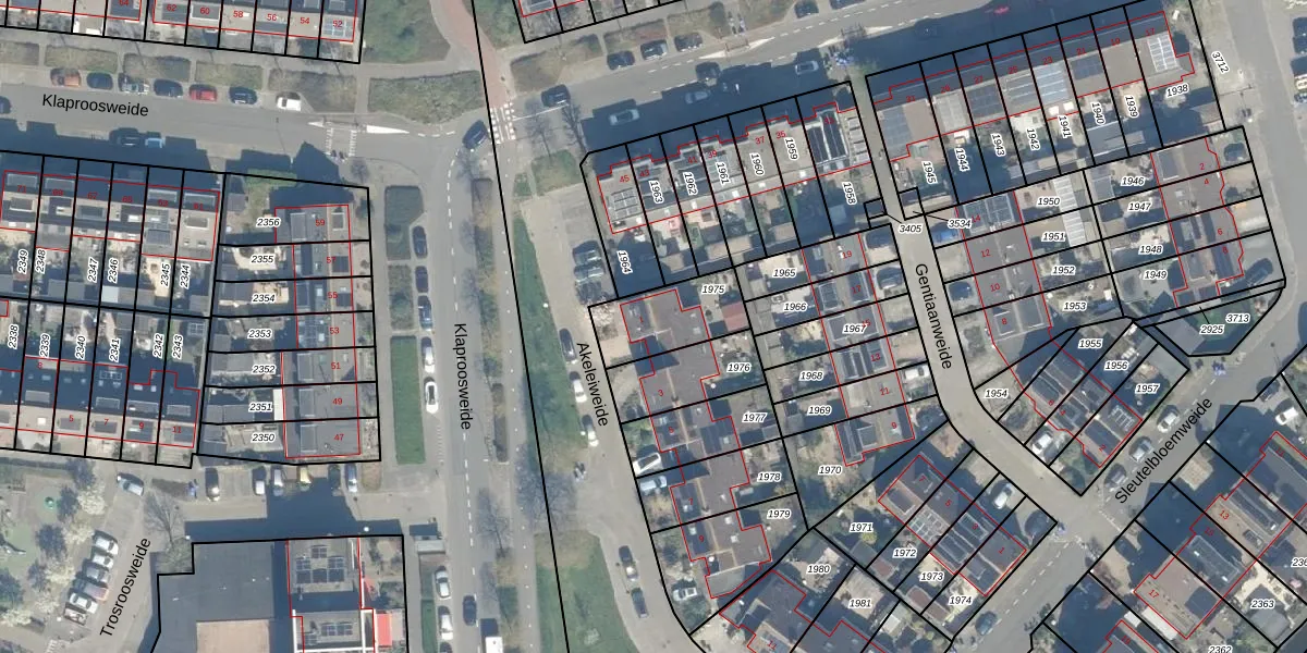 Het perceel waarop Akeleiweide 1 staat heeft een oppervlakte van 227 m². Dit is een middelgroot perceel. De perceeloppervlakte wordt geregistreerd door het Kadaster. Gedetailleerde informatie over de maten van dit perceel kunt u vinden in het rapport Kadastrale kaart met maatvoering van Akeleiweide 1.
