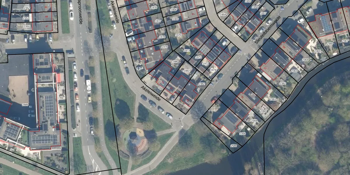 Gebruik de zoekbalk of klik op een perceel voor informatie over de adressen binnen dit perceel.