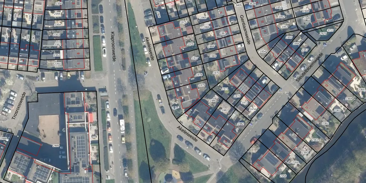 Gebruik de zoekbalk of klik op een perceel voor informatie over de adressen binnen dit perceel.