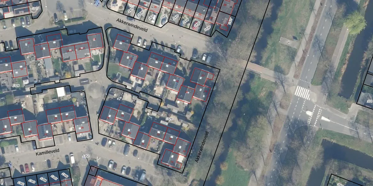 Akkerwindeveld 25 is gelegen op kadastraal perceel WDN01D1329. Deze kadastrale aanduiding is uniek en wordt gebruikt door het Kadaster om eigendomsrechten en andere zakelijke rechten vast te leggen. Het perceel maakt onderdeel uit van de kadastrale gemeente Woerden.