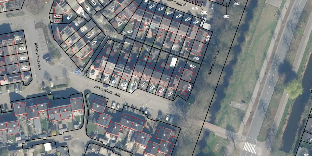 Akkerwindeveld 32 is gelegen op kadastraal perceel WDN01D1434. Deze kadastrale aanduiding is uniek en wordt gebruikt door het Kadaster om eigendomsrechten en andere zakelijke rechten vast te leggen. Het perceel maakt onderdeel uit van de kadastrale gemeente Woerden.