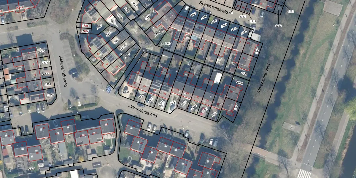 Akkerwindeveld 34 is gelegen op kadastraal perceel WDN01D1432. Deze kadastrale aanduiding is uniek en wordt gebruikt door het Kadaster om eigendomsrechten en andere zakelijke rechten vast te leggen. Het perceel maakt onderdeel uit van de kadastrale gemeente Woerden.