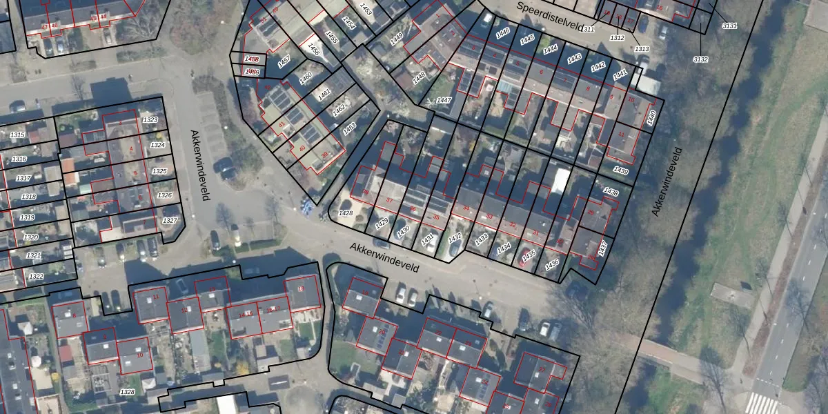 Akkerwindeveld 36 is gelegen op kadastraal perceel WDN01D1430. Deze kadastrale aanduiding is uniek en wordt gebruikt door het Kadaster om eigendomsrechten en andere zakelijke rechten vast te leggen. Het perceel maakt onderdeel uit van de kadastrale gemeente Woerden.