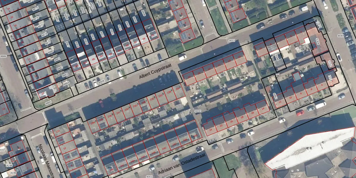 Albert Cuypstraat 23-A is gelegen op kadastraal perceel WDN01B9000. Deze kadastrale aanduiding is uniek en wordt gebruikt door het Kadaster om eigendomsrechten en andere zakelijke rechten vast te leggen. Het perceel maakt onderdeel uit van de kadastrale gemeente Woerden.