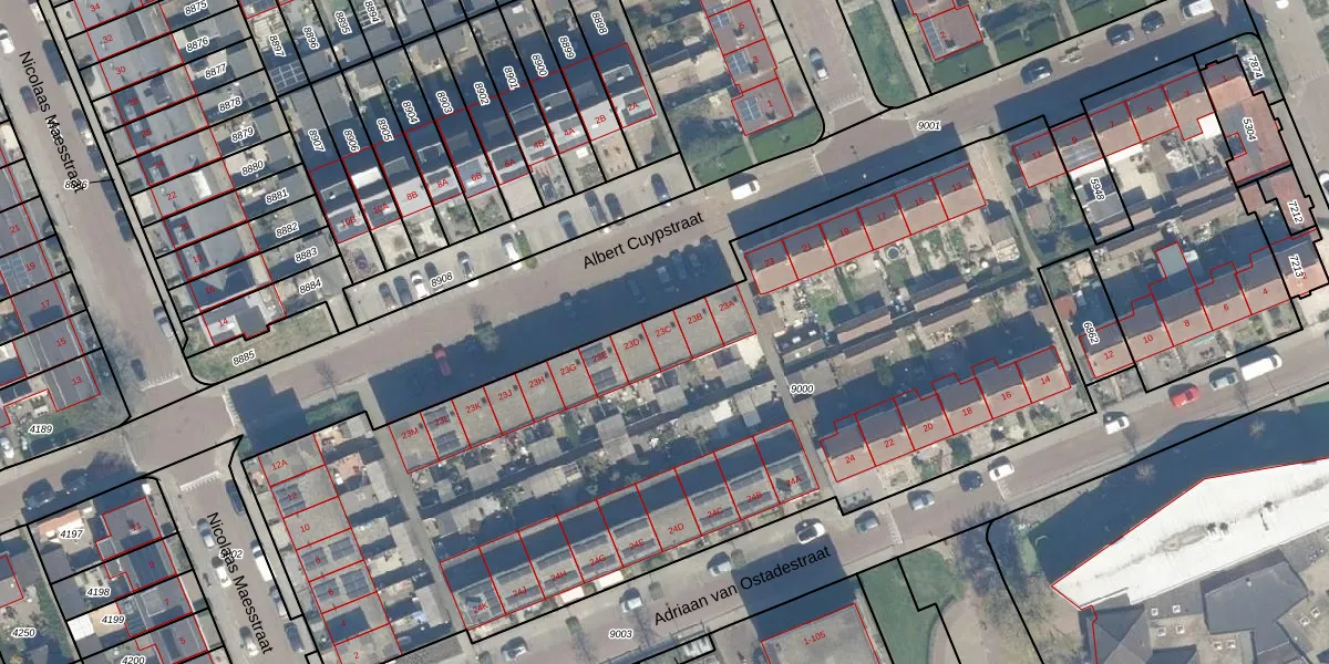 Albert Cuypstraat 23-C is gelegen op kadastraal perceel WDN01B9000. Deze kadastrale aanduiding is uniek en wordt gebruikt door het Kadaster om eigendomsrechten en andere zakelijke rechten vast te leggen. Het perceel maakt onderdeel uit van de kadastrale gemeente Woerden.