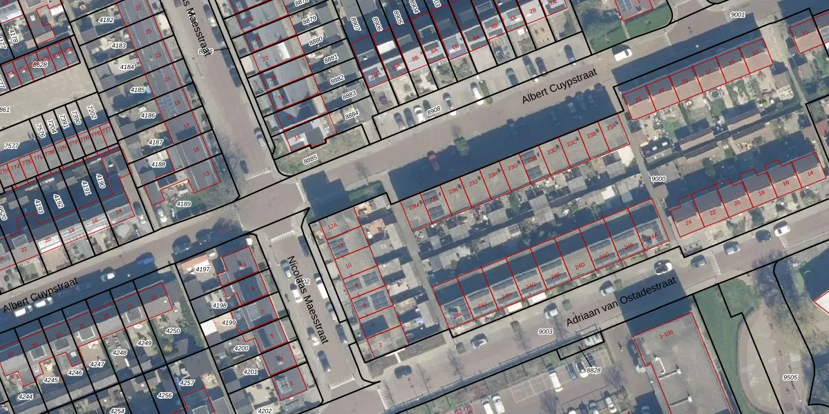 Albert Cuypstraat 23-M is gelegen op kadastraal perceel WDN01B9000. Deze kadastrale aanduiding is uniek en wordt gebruikt door het Kadaster om eigendomsrechten en andere zakelijke rechten vast te leggen. Het perceel maakt onderdeel uit van de kadastrale gemeente Woerden.