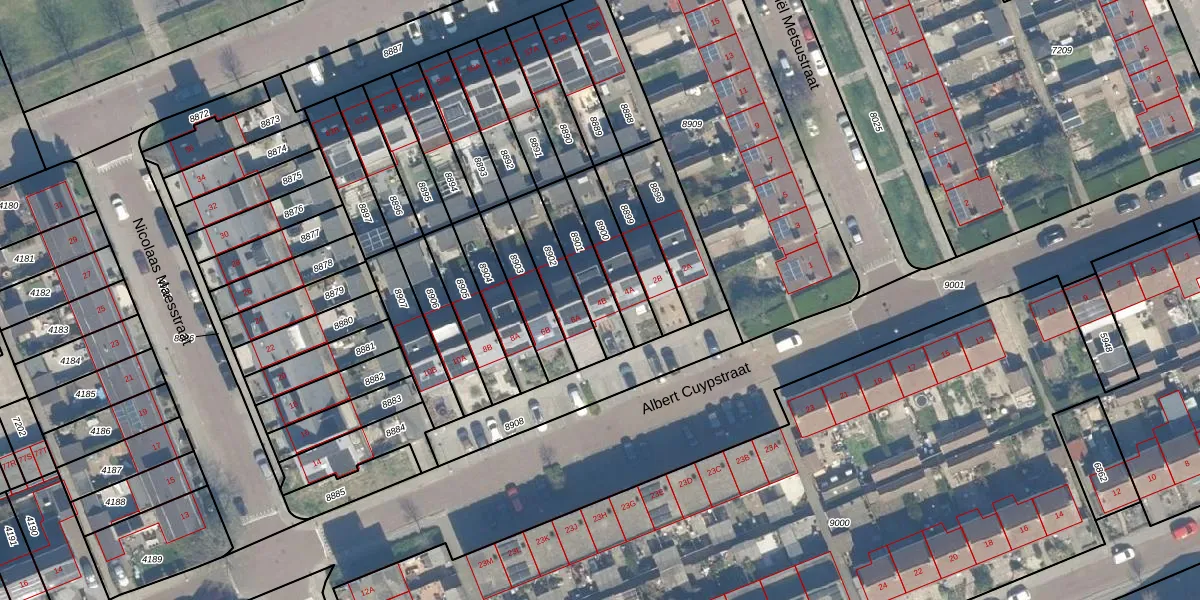 Gebruik de zoekbalk of klik op een perceel voor informatie over de adressen binnen dit perceel.