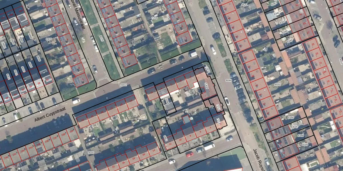 Albert Cuypstraat 7 is gelegen op kadastraal perceel WDN01B9000. Deze kadastrale aanduiding is uniek en wordt gebruikt door het Kadaster om eigendomsrechten en andere zakelijke rechten vast te leggen. Het perceel maakt onderdeel uit van de kadastrale gemeente Woerden.