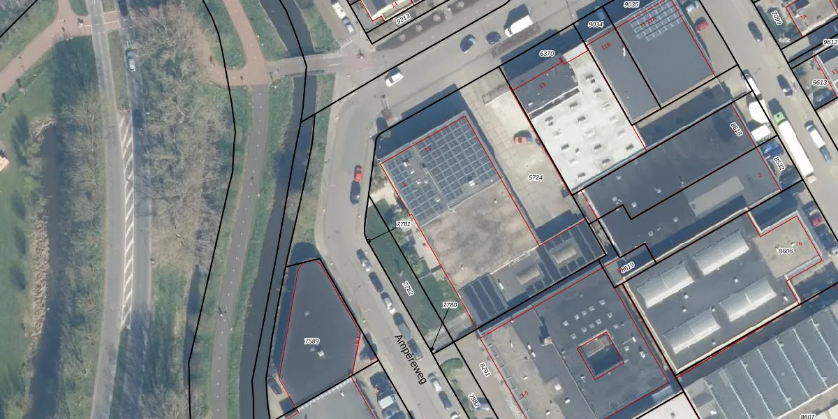 Het perceel waarop Ampèreweg 1 staat heeft een oppervlakte van 2123 m². Dit is een zeer groot perceel. De perceeloppervlakte wordt geregistreerd door het Kadaster. Gedetailleerde informatie over de maten van dit perceel kunt u vinden in het rapport Kadastrale kaart met maatvoering van Ampèreweg 1.