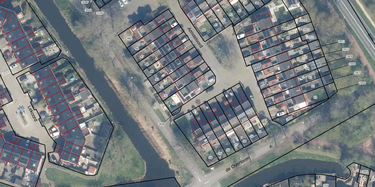 Gebruik de zoekbalk of klik op een perceel voor informatie over de adressen binnen dit perceel.