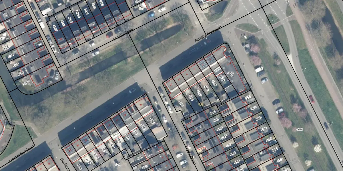 Het perceel waarop Amsterdamlaan 13 staat heeft een oppervlakte van 193 m². Dit is een middelgroot perceel. De perceeloppervlakte wordt geregistreerd door het Kadaster. Gedetailleerde informatie over de maten van dit perceel kunt u vinden in het rapport Kadastrale kaart met maatvoering van Amsterdamlaan 13.