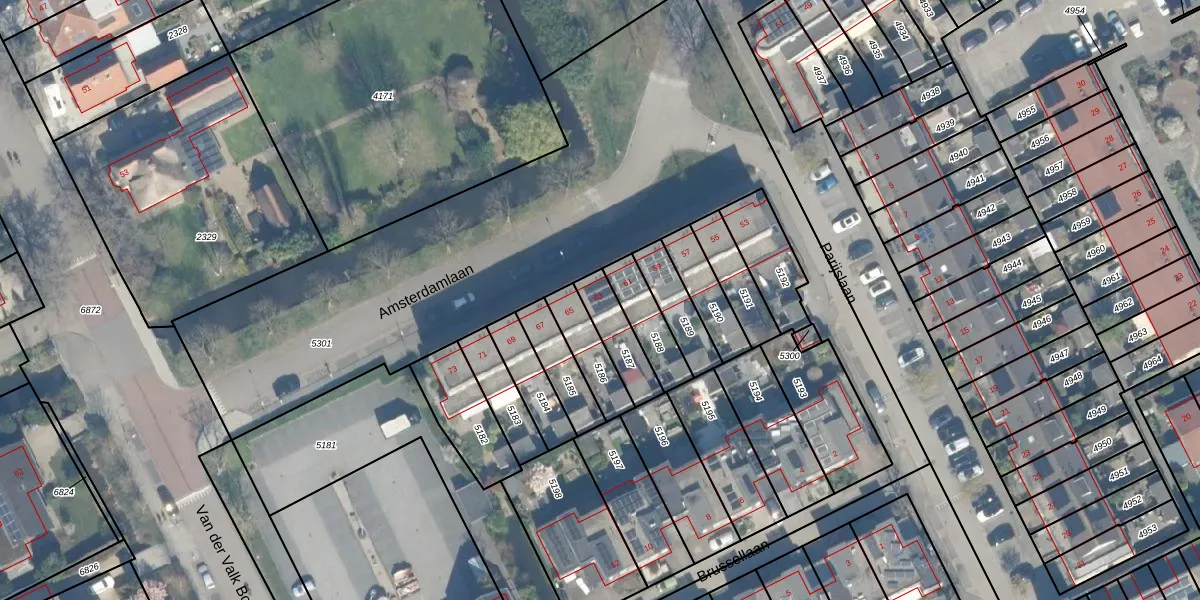 Het perceel waarop Amsterdamlaan 63 staat heeft een oppervlakte van 126 m². Dit is een middelgroot perceel. De perceeloppervlakte wordt geregistreerd door het Kadaster. Gedetailleerde informatie over de maten van dit perceel kunt u vinden in het rapport Kadastrale kaart met maatvoering van Amsterdamlaan 63.